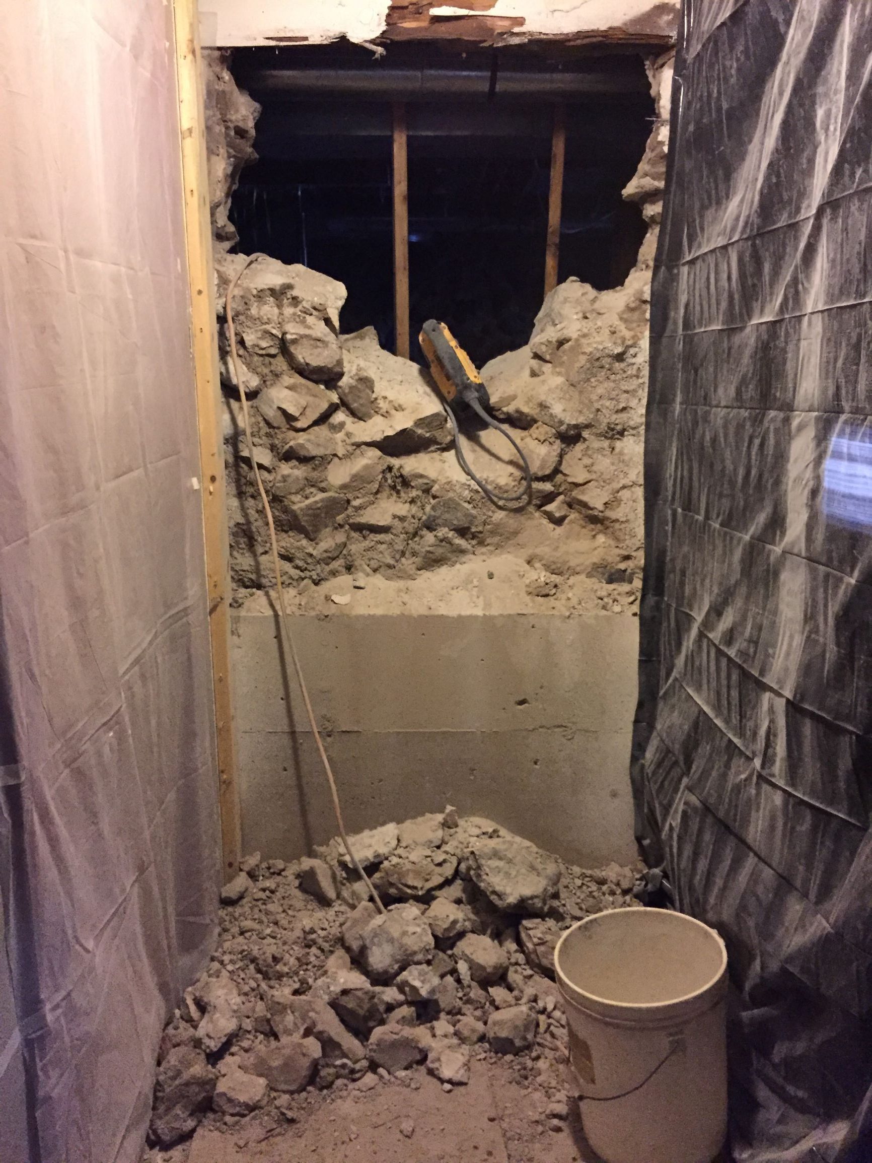 We wanted to make an easy access door to this old root cellar which required us to cut away part of the new basement and bust through the old rock foundation to give us access to our future dirt floor root cellar. I have little doubt this space was once used as a root cellar in the past.